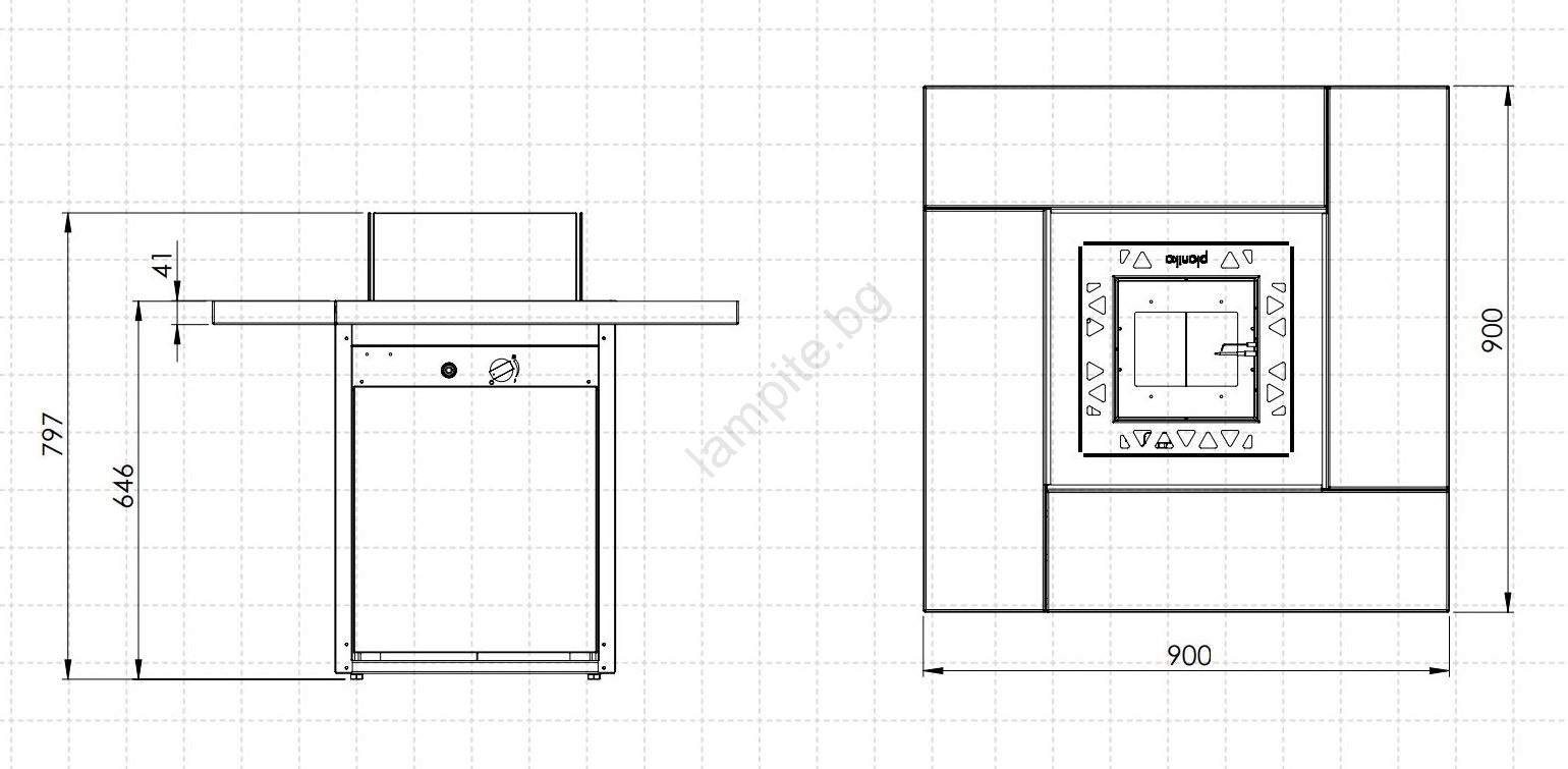 • Конструкцията на камината позволява наблюдение на огъня от всички страни.