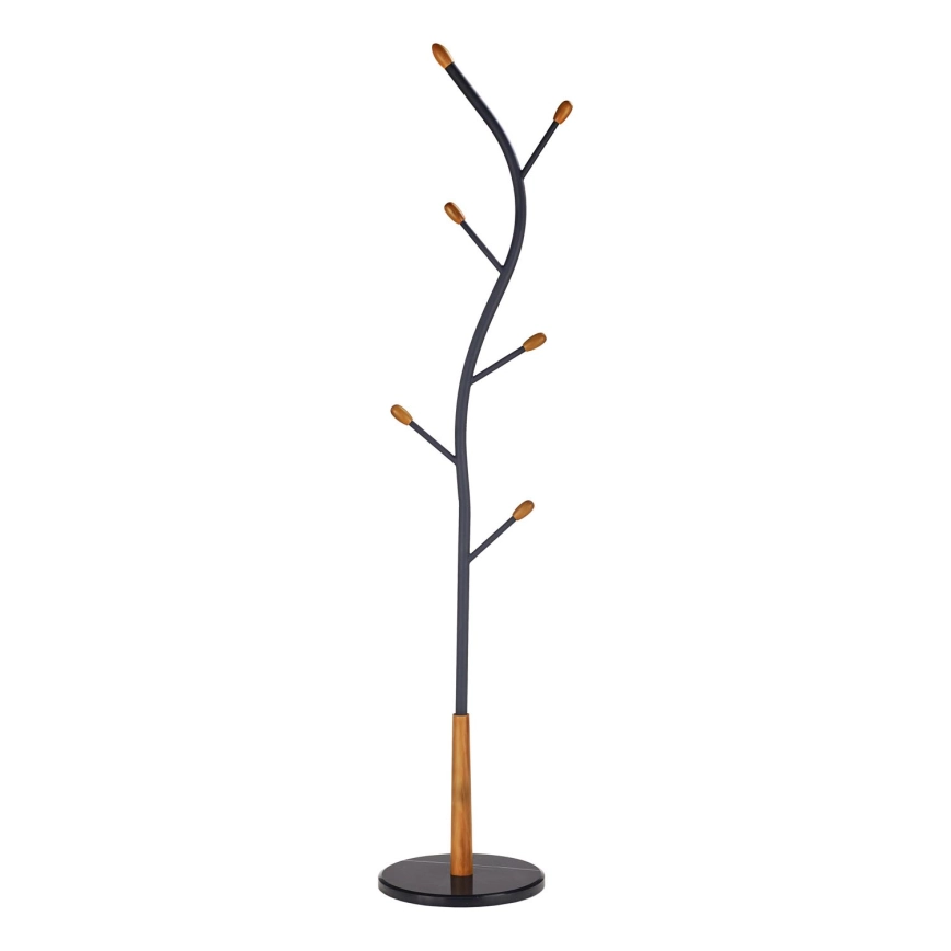 • Изработена от качествена прахово боядисана стомана в елегантно черно с изискани детайли от масивна дървесина на краищата на кукичките.