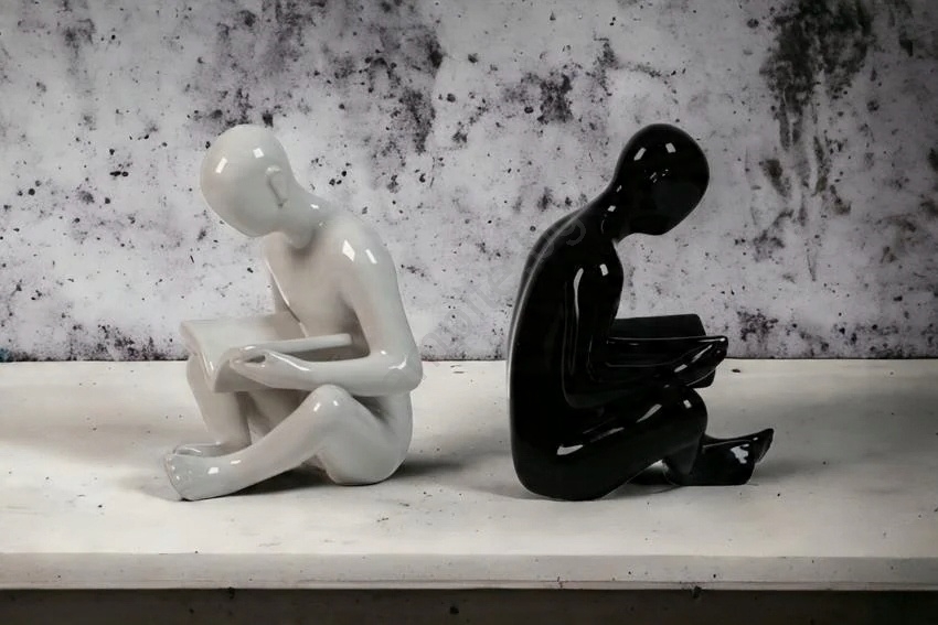 • Подпора за книги с изчистен, вечен дизайн в черно и бяло.