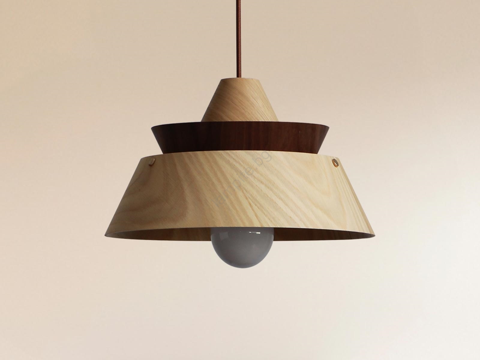 Дървен полилей на кабел, 1xE27/60W/230V, Ø 33 см, масивен/дъб/орех/каучуково дърво
