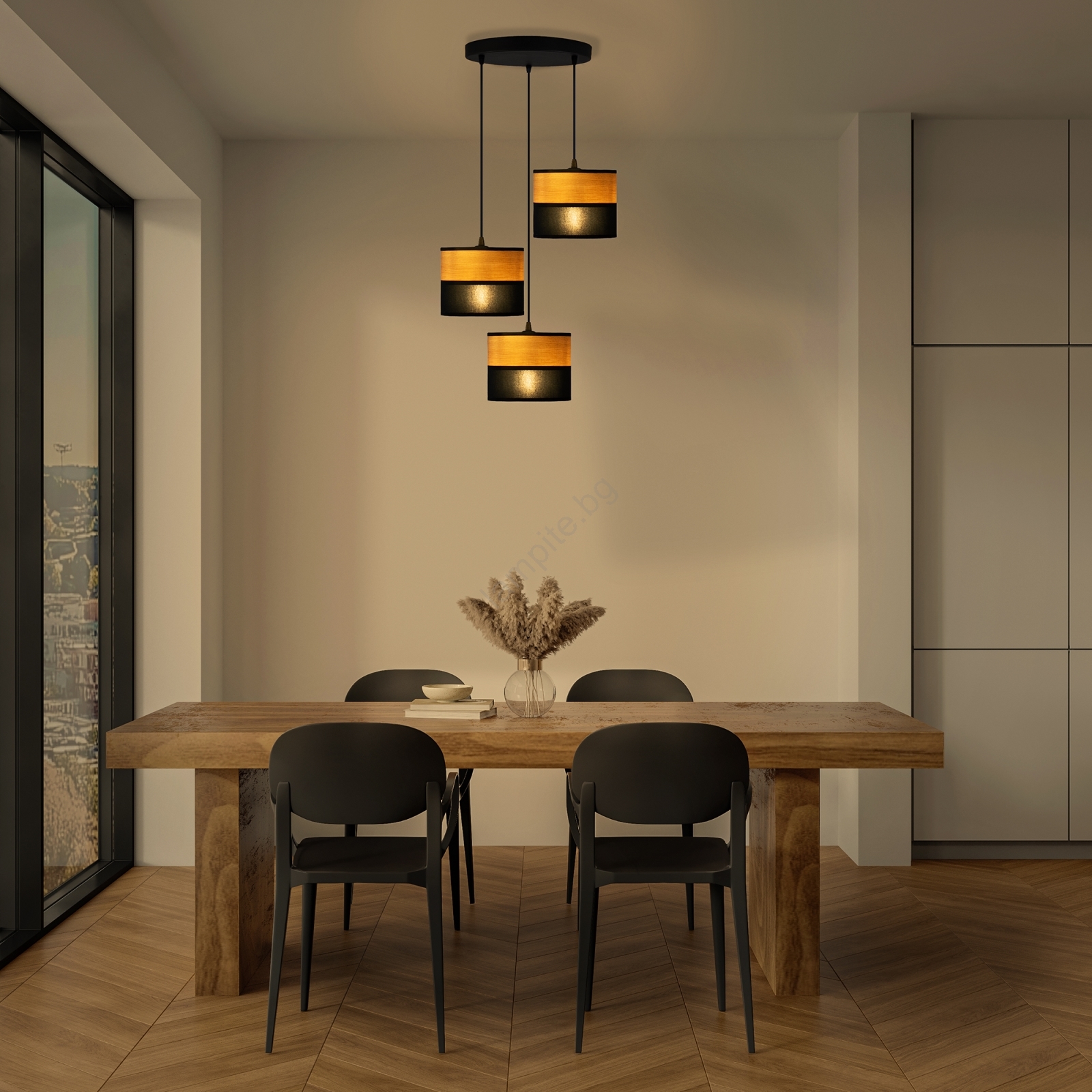 Полилей на кабел ALBA 3xE27/15W/230V Ø 40 cm черен/кафяв се отличава с приятен и функционален дизайн.  Подходяща е крушка с цокъл E27. Тук можете да закупите и други крушки на изгодни цени. Ще имате интересно допълнение към дома си.
