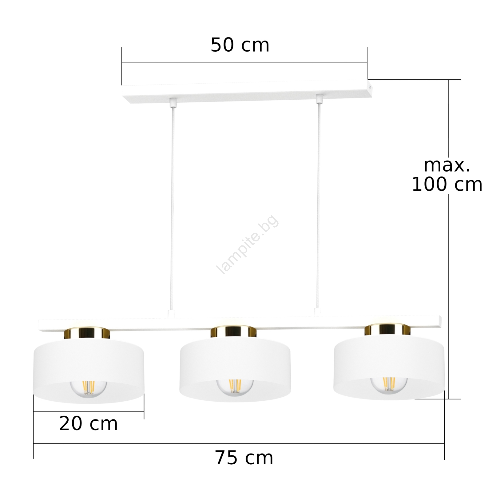 • Полилей на кабел IGNIA 3xE27/60W/230V бял