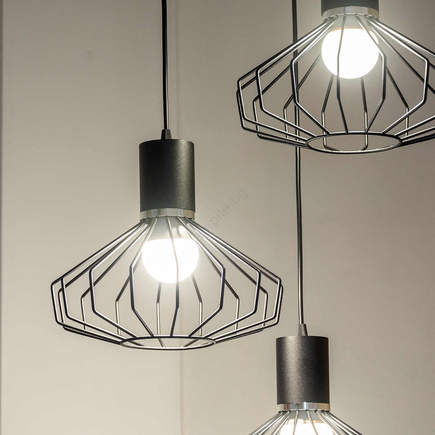 Полилей на кабел SOLANO 3xE27/15W/230V черен/лъскав хром се отличава с приятен и функционален дизайн.  Подходяща е крушка с цокъл E27. Тук можете да закупите и други крушки на изгодни цени. Ще имате интересно допълнение към дома си.