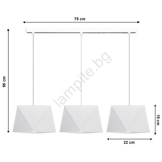 Полилей на верижка DIAMENT 3xE27/60W/230V бяла се отличава с приятен и функционален дизайн.  Подходяща е крушка с цокъл E27. Тук можете да закупите и други крушки на изгодни цени. Ще имате интересно допълнение към дома си.