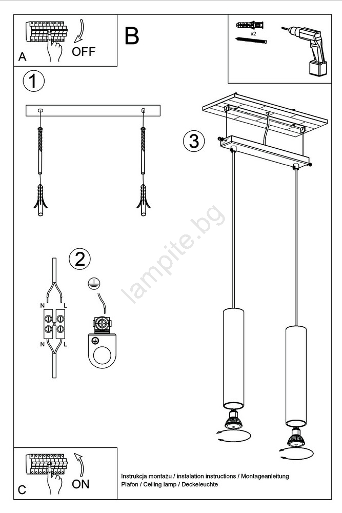 • Полилей на верижка LAGOS 2 2xGU10/40W/230V бяла