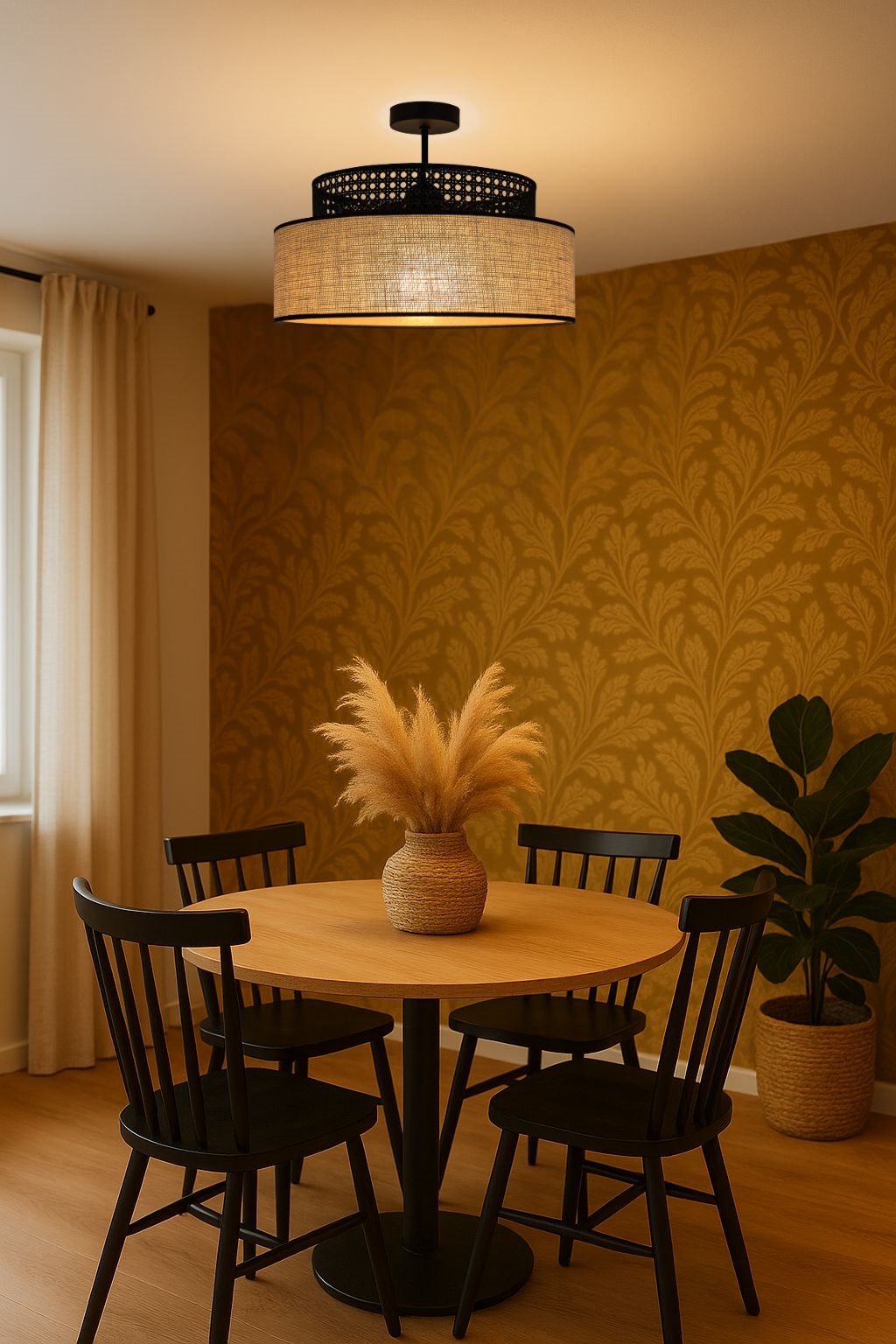 Полилей за повърхностен монтаж BOHO 1xE27/60W/230V Ø 40 см черен/ратан се отличава с приятен и функционален дизайн.  Подходяща е крушка с цокъл E27. Тук можете да закупите и други крушки на изгодни цени. Ще имате интересно допълнение към дома си.