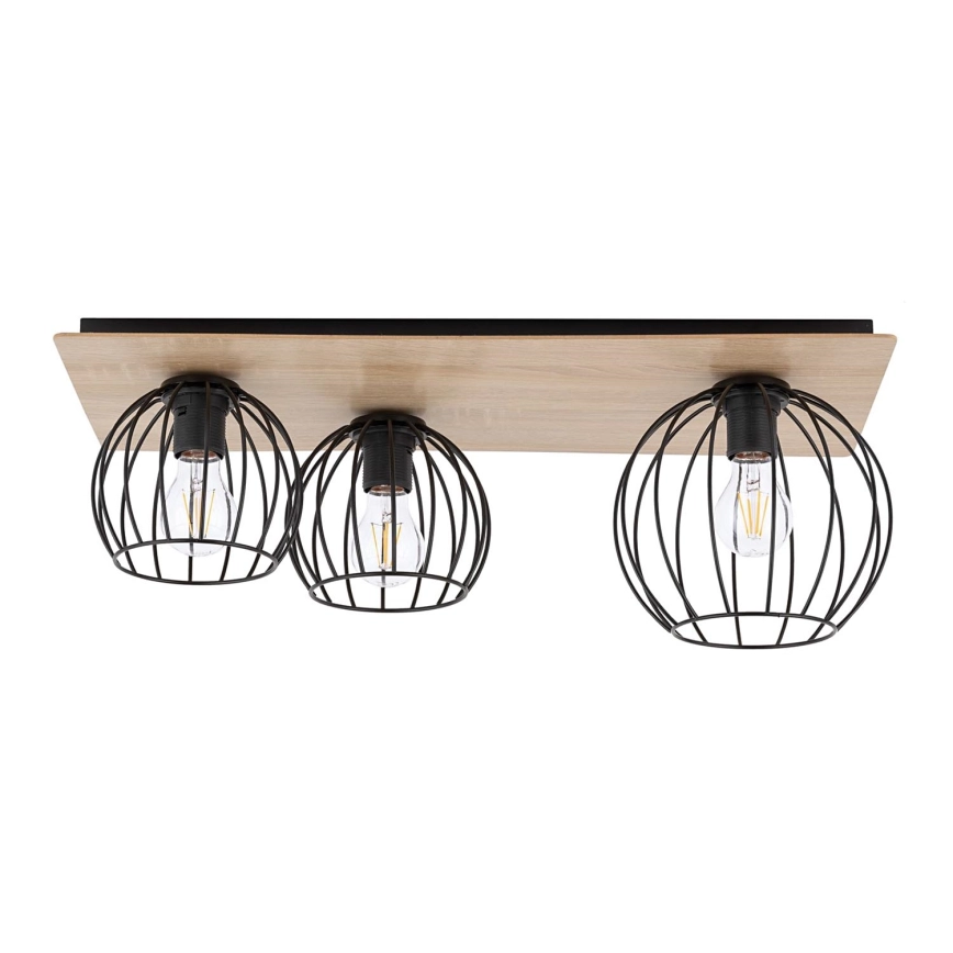 Полилей за повърхностен монтаж CYBER 3xE27/60W/230V дървен/черен
