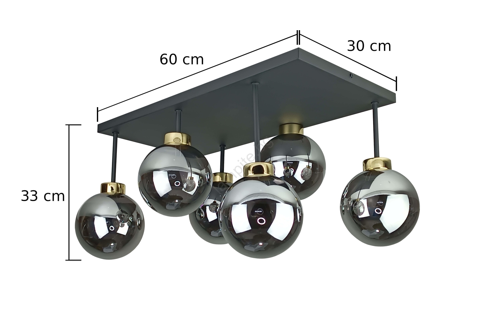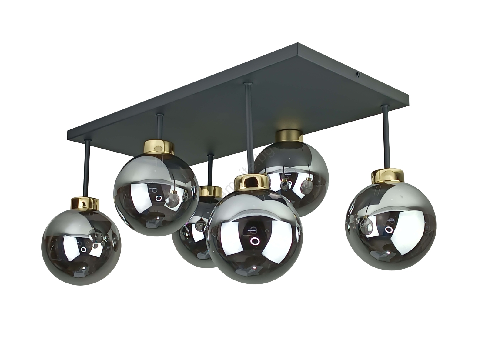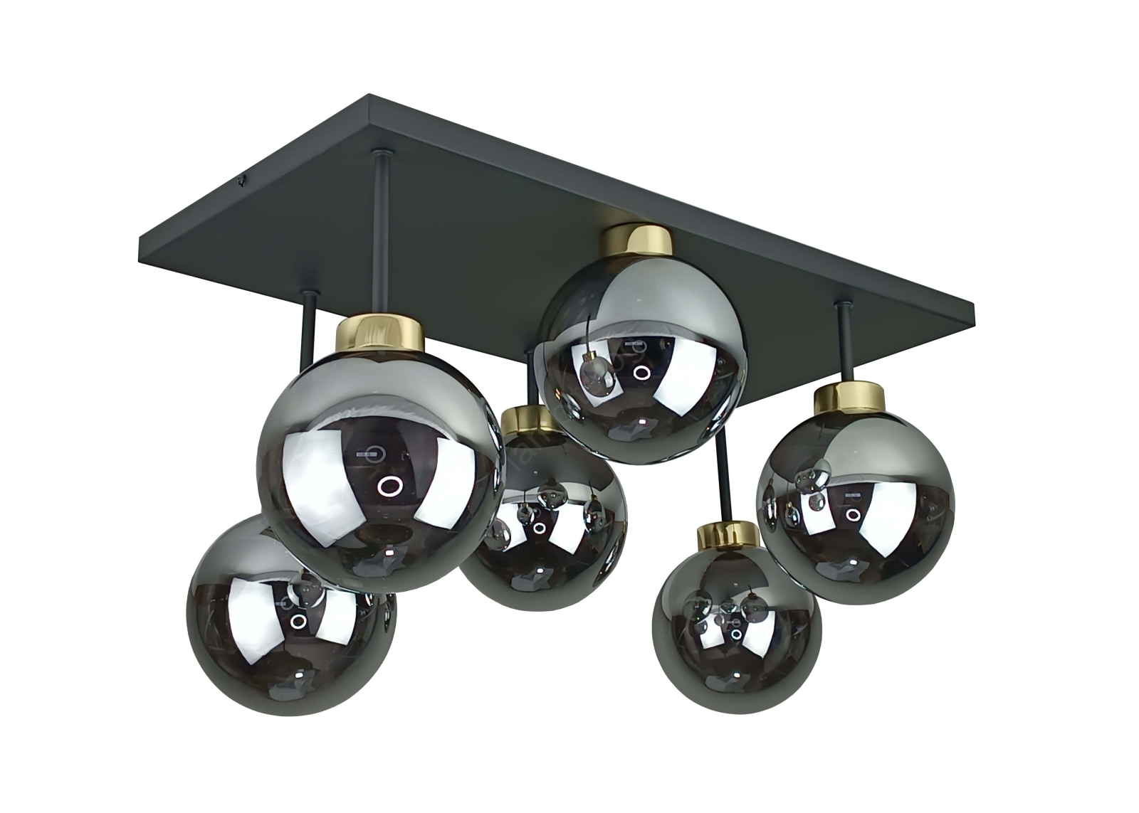 Полилей за повърхностен монтаж DEA 6xE14/60W/230V черен/златист/опушен черен се отличава с приятен и функционален дизайн.  Подходяща е крушка с цокъл E14. Тук можете да закупите и други крушки на изгодни цени. Ще имате интересно допълнение към дома си.