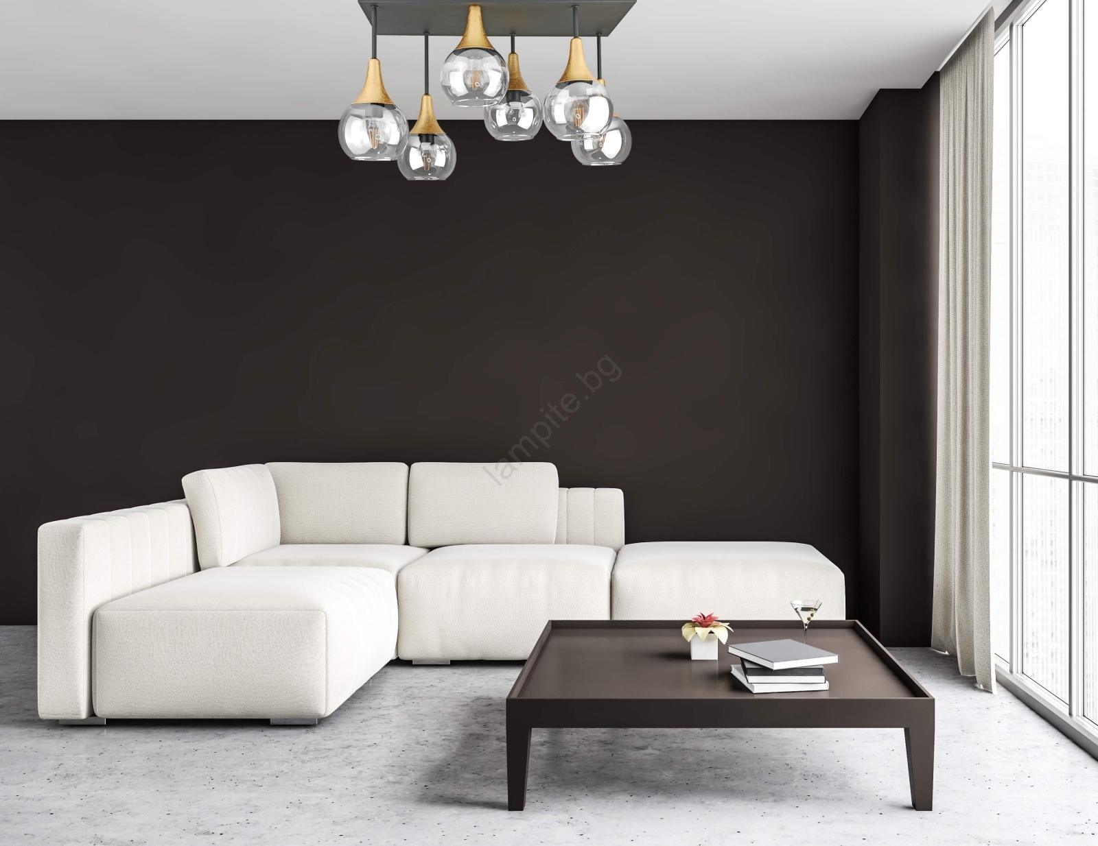 Полилей за повърхностен монтаж SOMA 6xE27/60W/230V черен/златист/прозрачен се отличава с приятен и функционален дизайн.  Подходяща е крушка с цокъл E27. Тук можете да закупите и други крушки на изгодни цени. Ще имате интересно допълнение към дома си.
