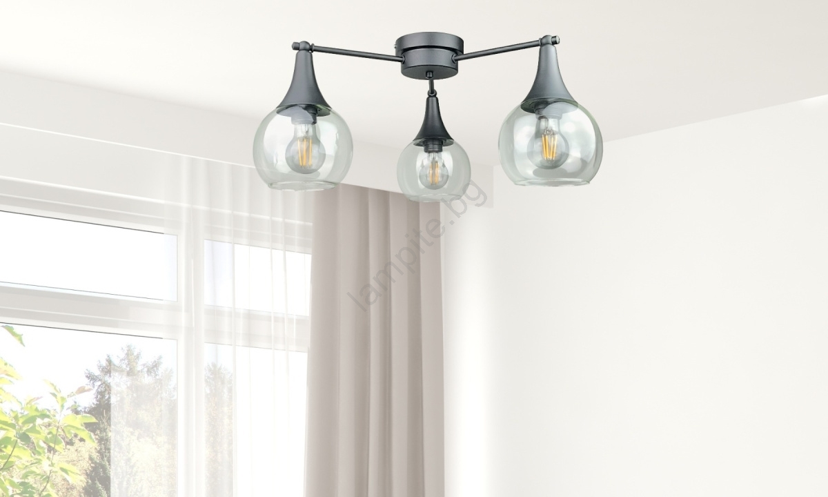 Полилей за повърхностен монтаж STAR 3xE27/60W/230V черен/прозрачен се отличава с приятен и функционален дизайн.  Подходяща е крушка с цокъл E27. Тук можете да закупите и други крушки на изгодни цени. Ще имате интересно допълнение към дома си.