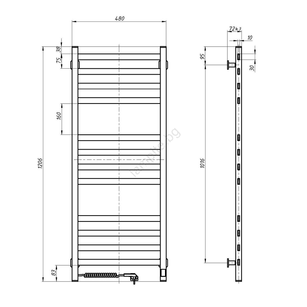 Стълбов радиатор за баня с термостат AVANGARD 227W 120x48 cm, черен, ляв