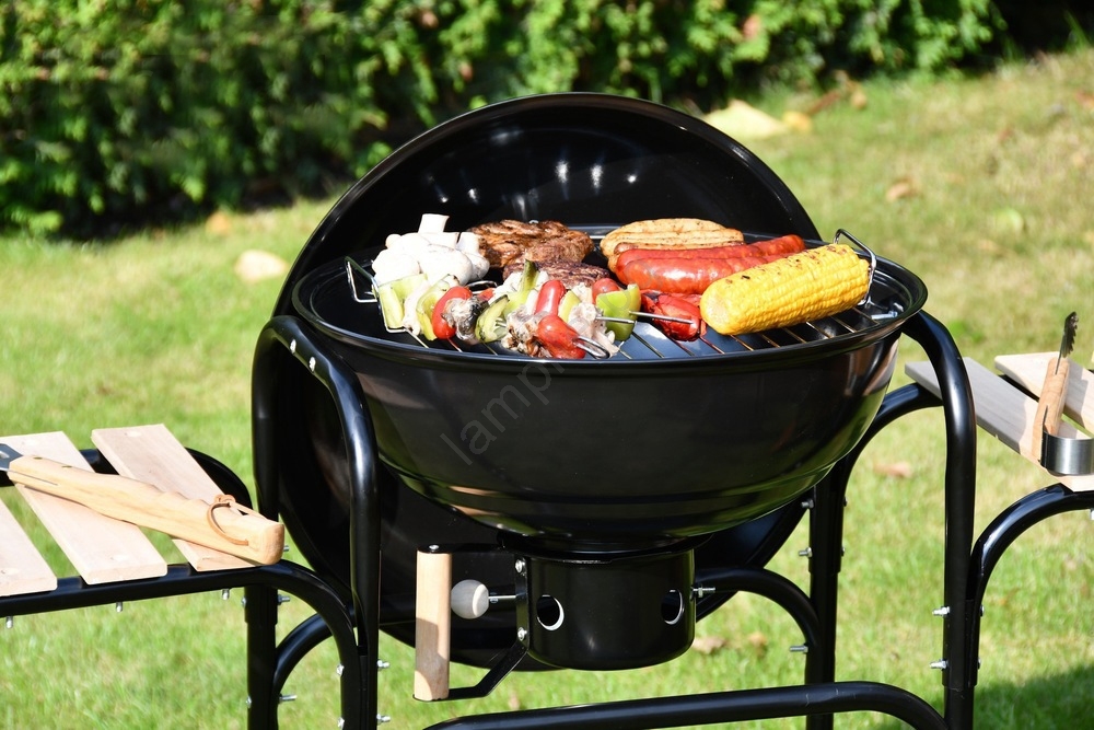 • Пространството за съхранение е осигурено от два дървени рафта с размери 31 x 21 см, разположени отстрани на грила.