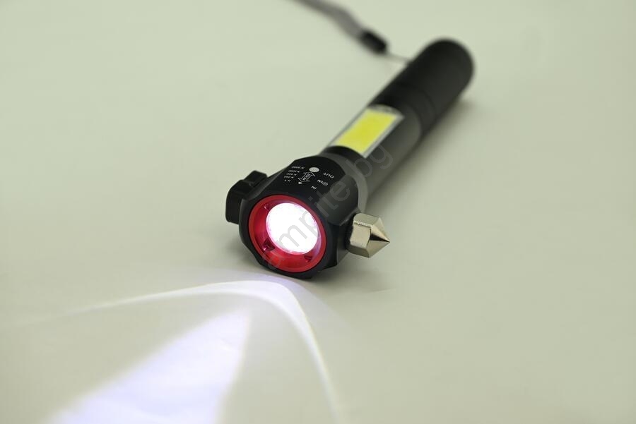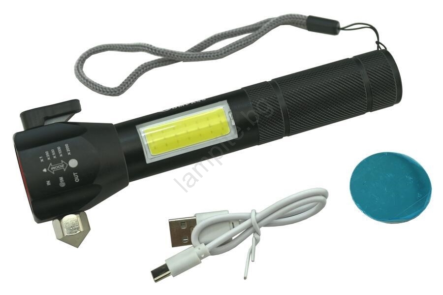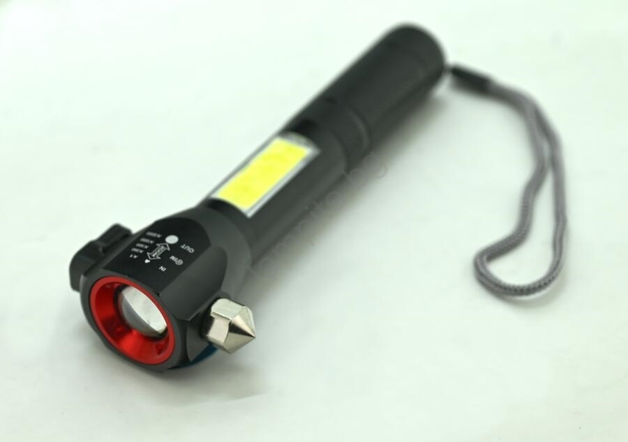 • Презареждаема LED лампа с предно осветление с функция zoom, странично разпръснато COB осветление и полезни аварийни функции.
