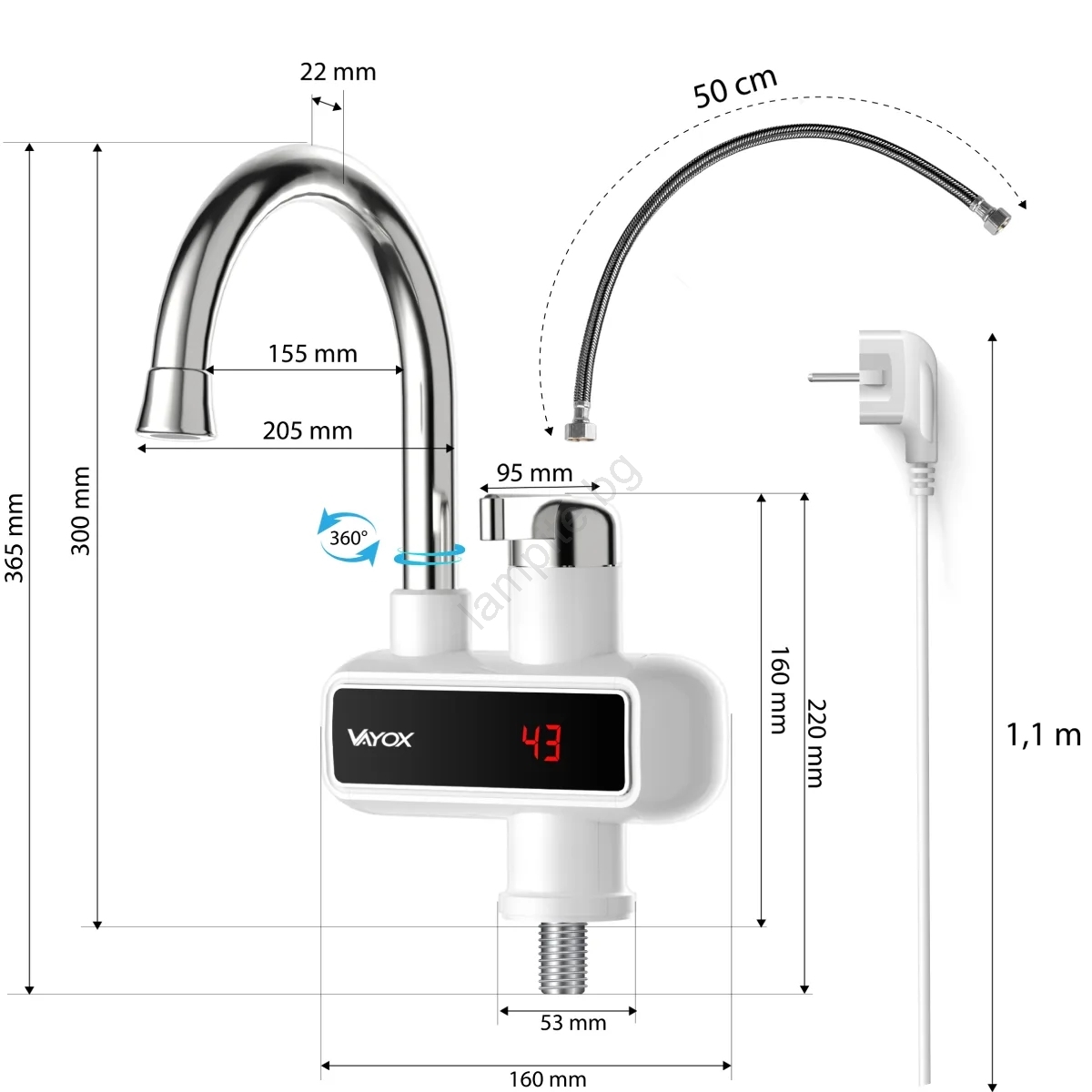 • Бойлерът ви позволява да загреете водата до 50 °C само за 3 секунди.