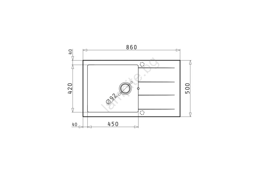 • Диаметър на отвора за оттичане: 92 мм.