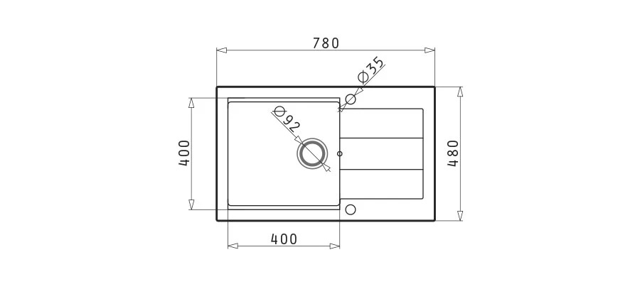 • Диаметър на отвора за изтичане: 92 мм.