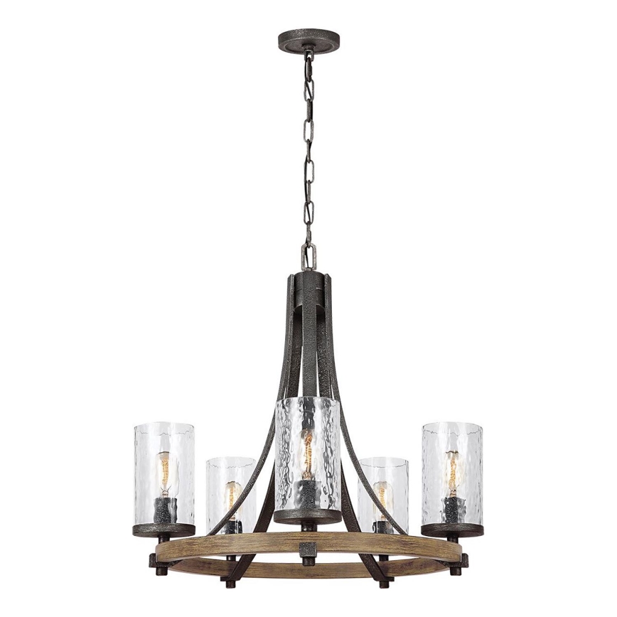 Quintiesse - Полилей на верига ANGELO 5xE27/60W/230V дъбов декор