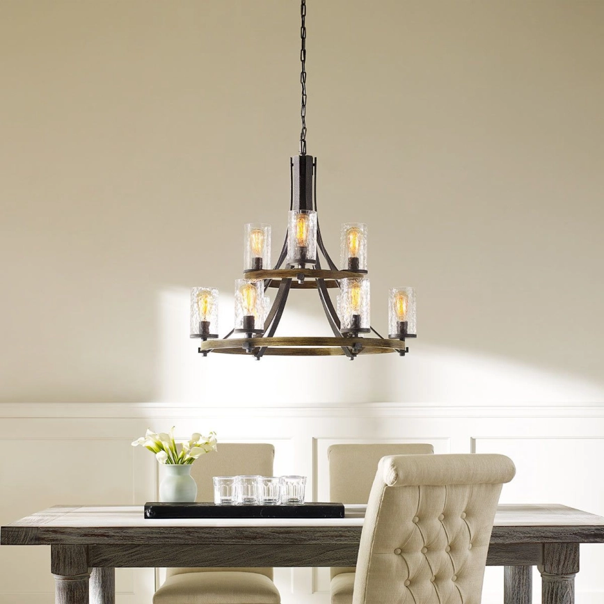 Quintiesse - Полилей на верига ANGELO 9xE27/60W/230V декор дъб