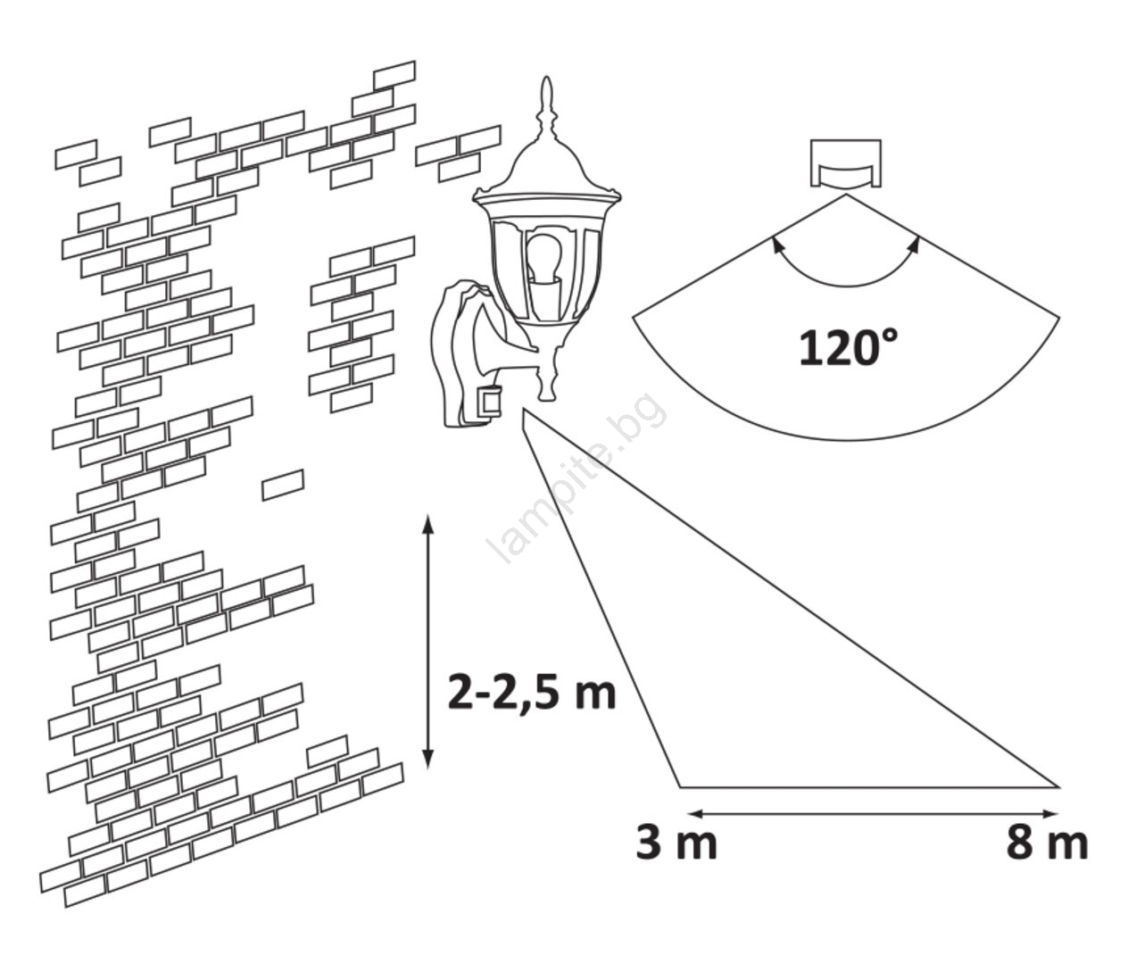 • Сензорът не работи при дневна светлина: >30 лукса.