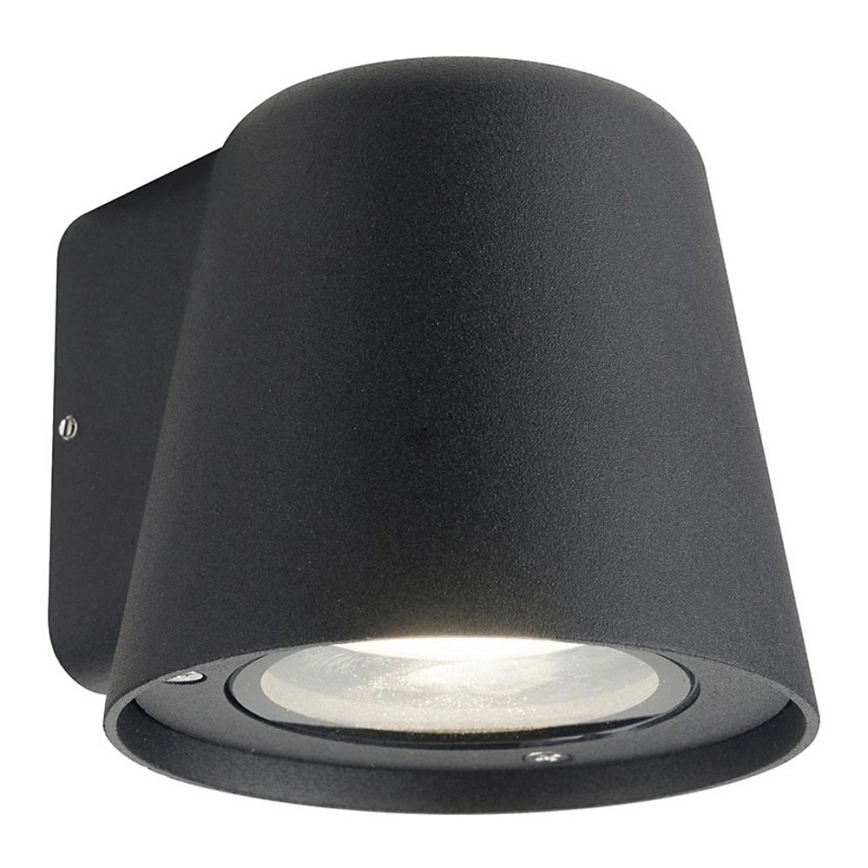 Външният стенен осветител Mandal представя модерен стил. Матирано черно осветително тяло, изработено от алуминий, което се разширява надолу и е допълнено с прозрачен стъклен абажур. Този модел с насочено надолу осветление е практичен избор за тераса или външна стена на къща. Можете да го поставите например над входната врата, за да улесните отключването. Стенният осветител може да се използва с една крушка с мощност до 35W, с фасунга GU10. Защитата му IP54 гарантира, че осветителят Mandal е защитен от вреден прах и водни струи от всякаква посока. Размерите на външното осветително тяло са следните: ширина 100 мм, височина 90 мм, разстояние от стената 110 мм. Осветителят се доставя без източник на светлина.