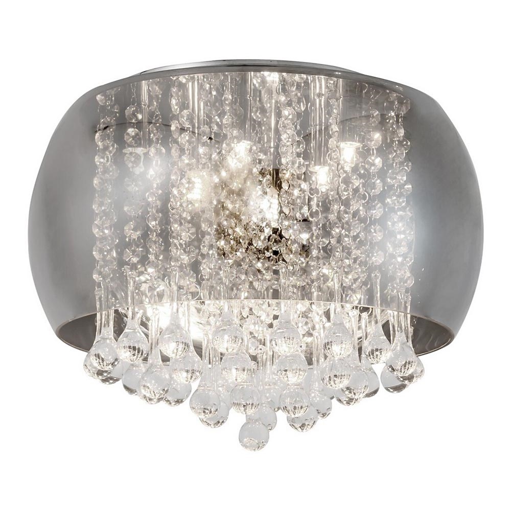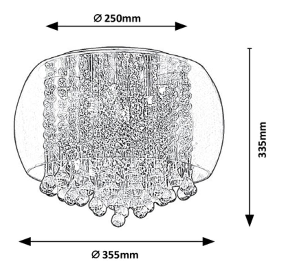 Потолно осветително тяло Ninelle, което представя модерен стил, се препоръчва на всички, които предпочитат лъскаво и елегантно осветление за своя хол или спалня. Металното осветително тяло в хромиран цвят е допълнено от тониран стъклен абажур, частично покрит с бляскава декорация от кристално стъкло. Осветителното тяло Ninelle е като специално бижу, висящо от тавана. Този впечатляващ модел може да се използва с шест крушки, всяка с мощност до 40 W. Типът на фасунгата е G9. Според вашия вкус и желания ефект можете да изберете топла или естествено бяла светлина. Размерите на потолочното осветително тяло Ninelle са: диаметър 400 мм, разстояние от тавана 325 мм, монтажен диаметър 250 мм. Този модел се доставя без светлинни източници.