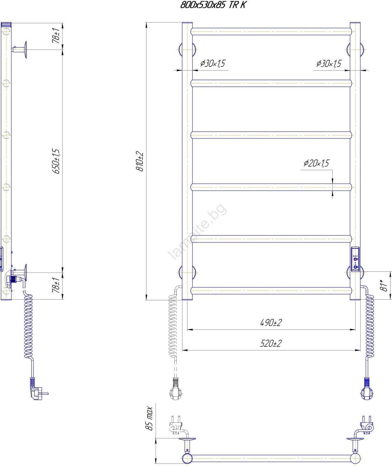 Радиатор за баня тип стълба CLASSIC 110W/230V 81x52 см, инокс/бял, дясно изпълнение