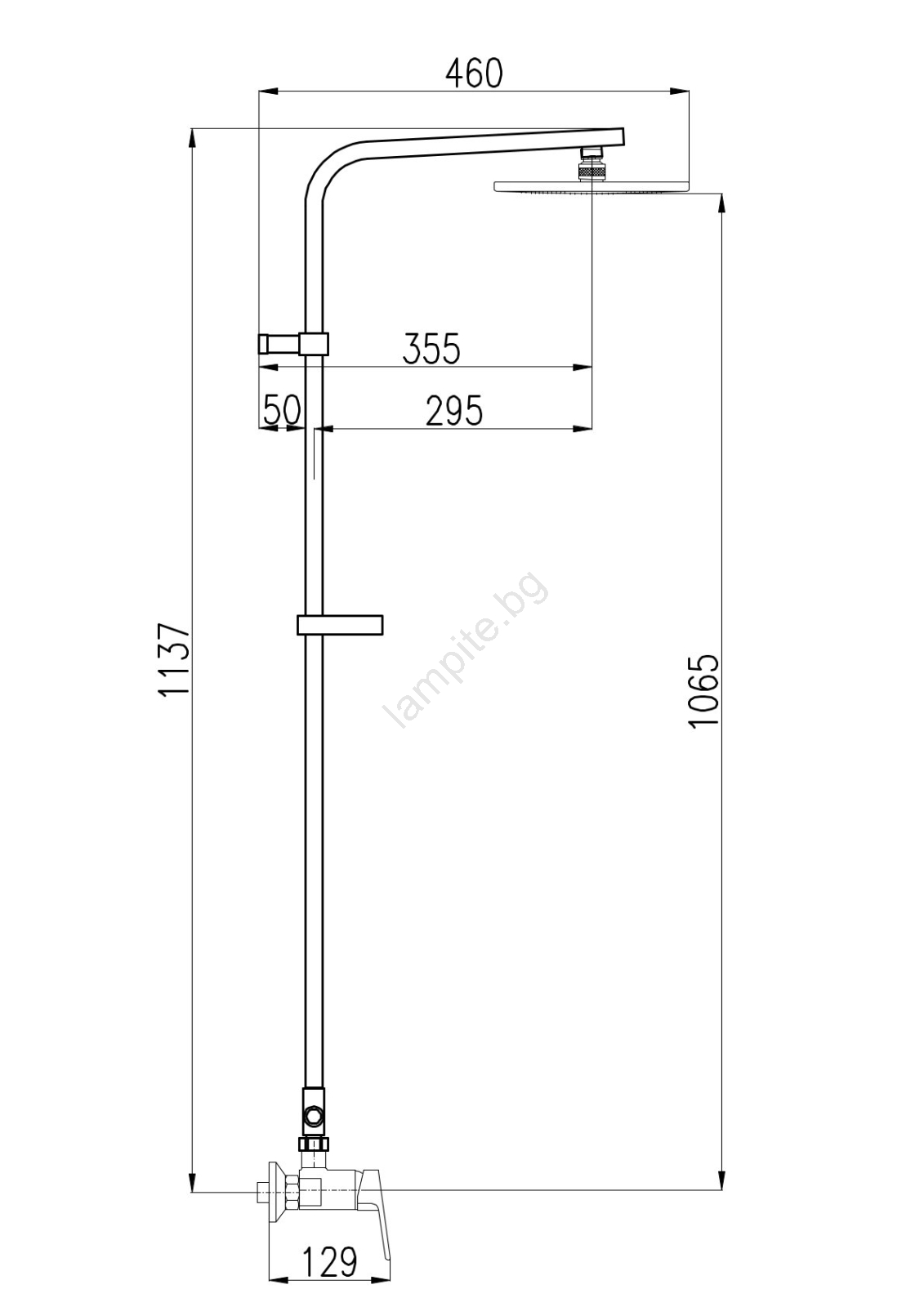 • Комплектът съдържа: смесител за душ, ръчен еднопозиционен душ с покритие против варовик, горен душ с покритие против варовик (20 x 20 см), метален душ маркуч с двойно заключване (дължина 150 см), душ щанга с едно стеново закрепване.