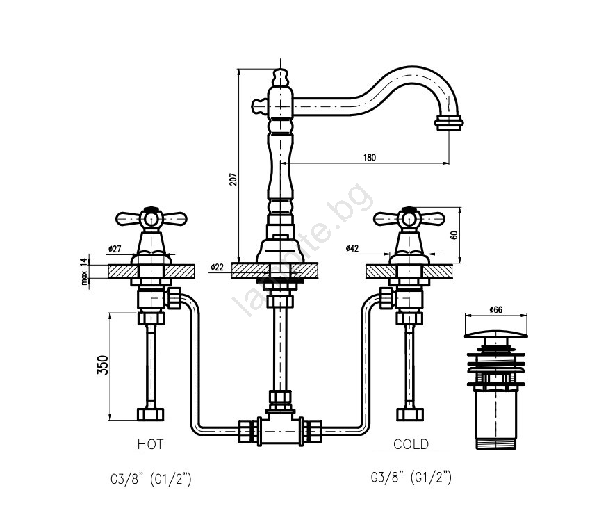 • Този смесител може да се комбинира със смесители от серията MORAVA RETRO SLEZÁK - RAV.