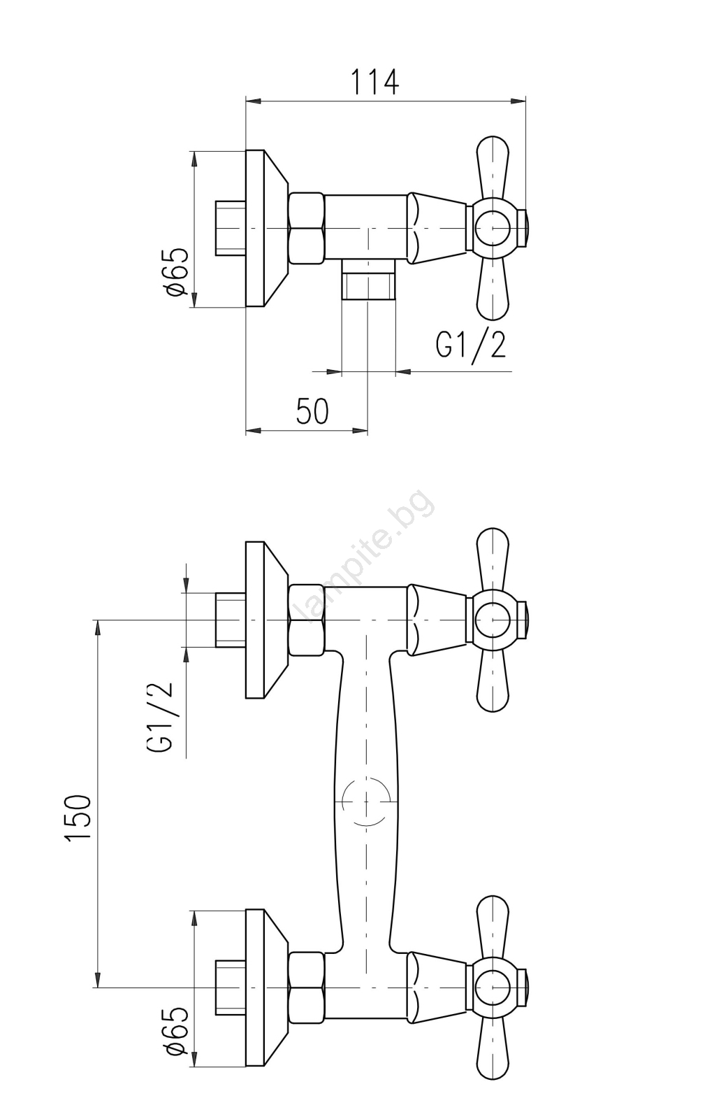 • Стенен душ смесител.