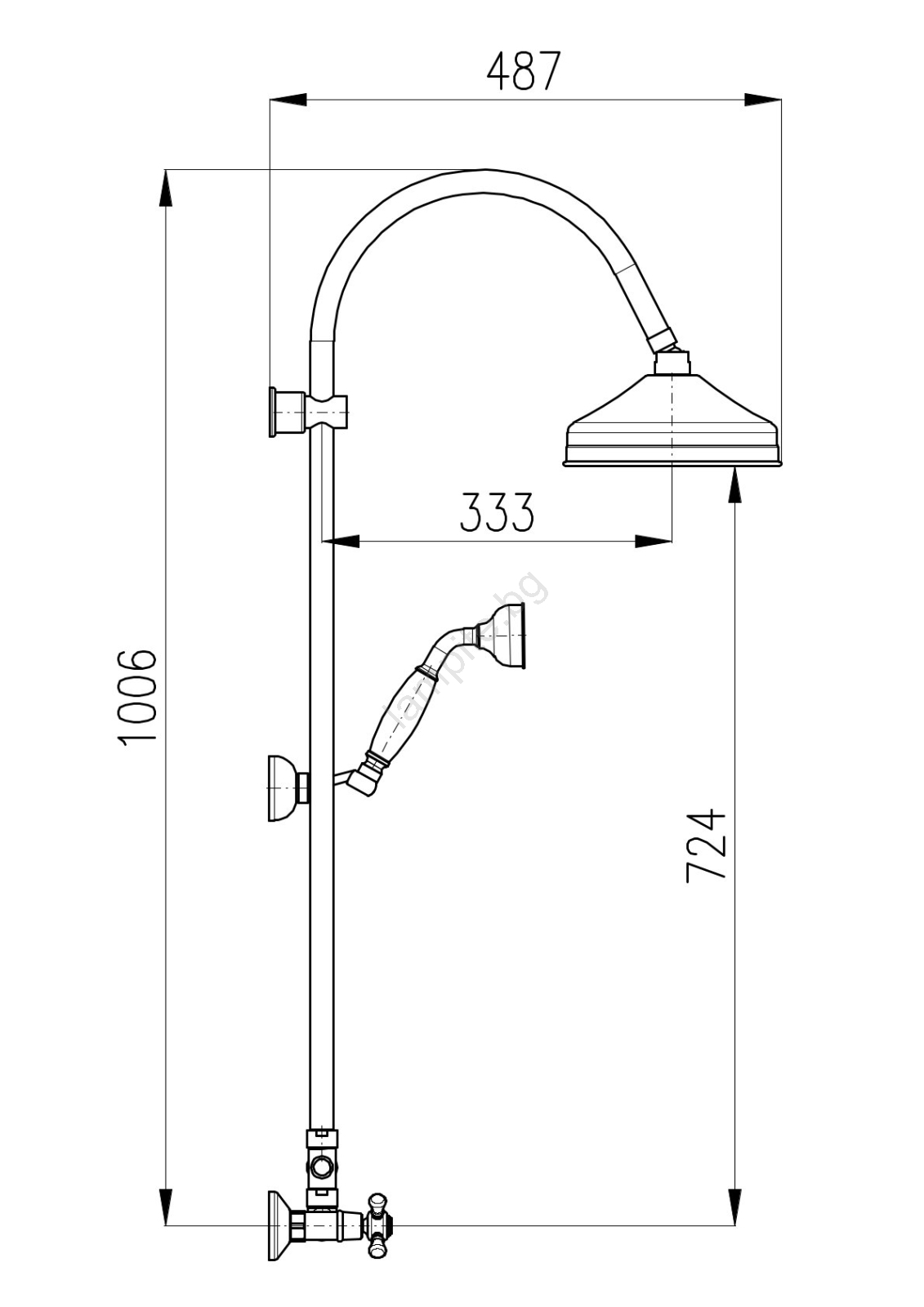 • Стенен душ смесител за водопровод с горна и ръчна душ глава.