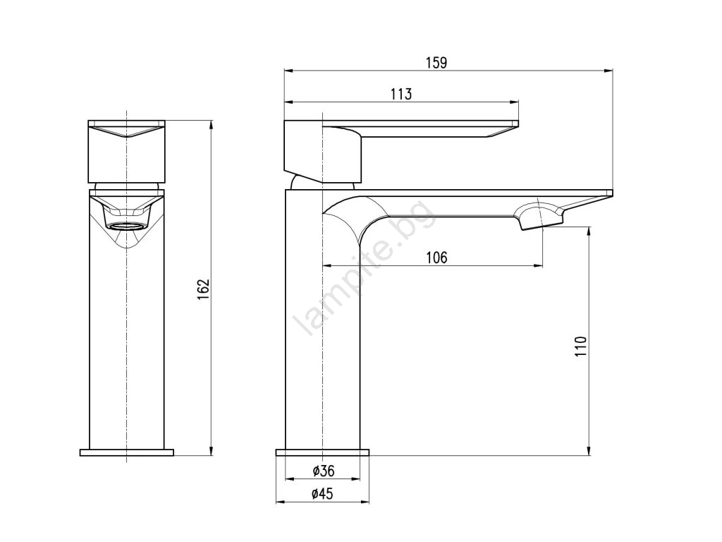 • Стоящ смесител за умивалник без изпускател.