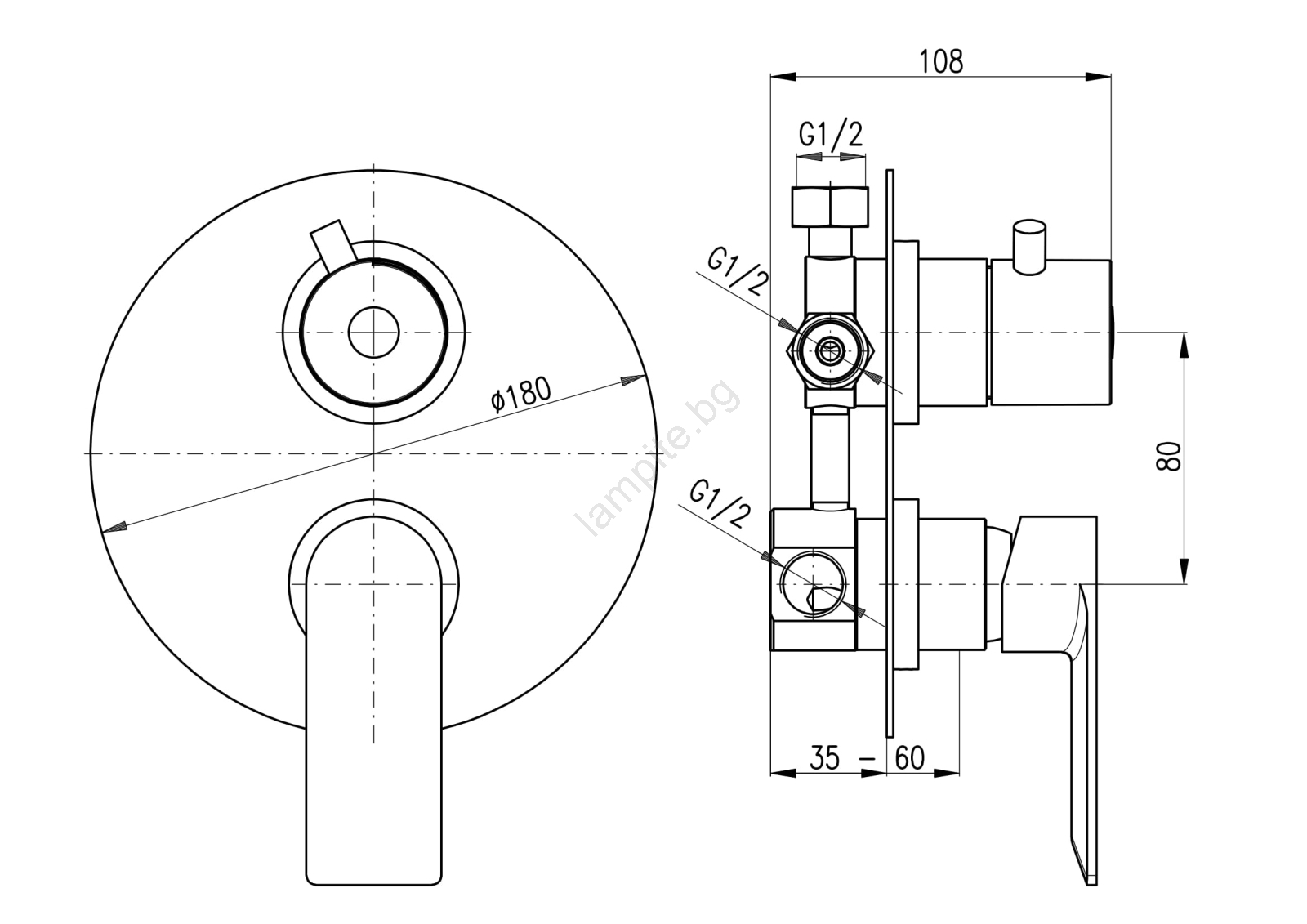 • 3-пътен вграден водопроводен смесител с превключвател.