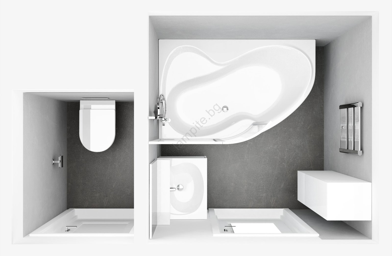 • Ъглова вана Rosa 95 в ляв вариант е идеалното решение за по-малки бани, където дори на ограничено пространство осигурява удобно място за релаксираща вана или освежаващ душ.