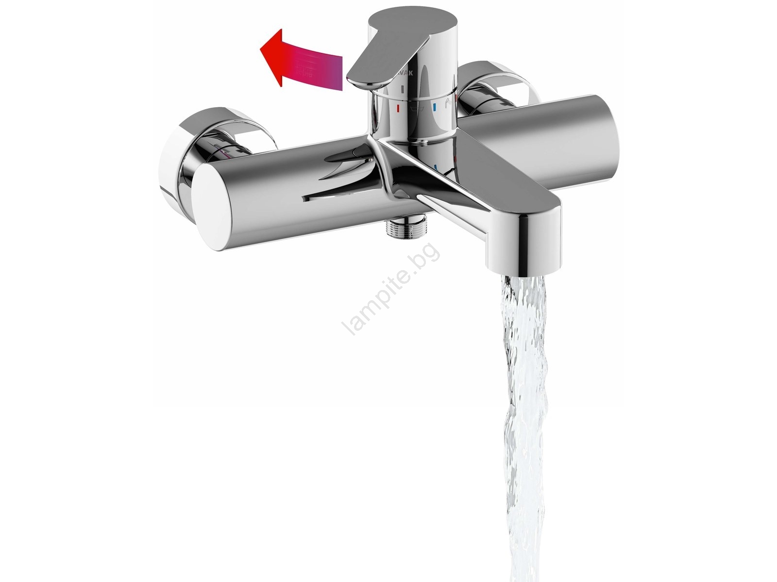 • Чрез движение на лоста надясно (душ) или наляво (вана) се регулира само температурата на водата, а дебитът остава стабилен.