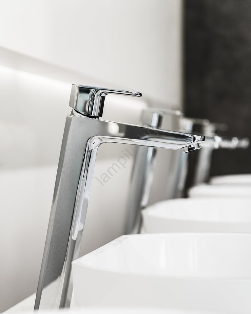 • Смесителят за мивка Free в блестящ хром е с допълнителна удължена височина 334 мм, идеален за мивки, монтирани върху плот.