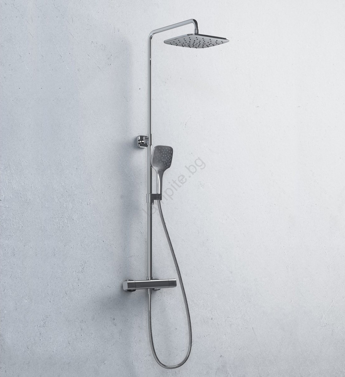 • Душ колоната Free е плъзгащ комплект с термостатен смесител в лъскав хром.