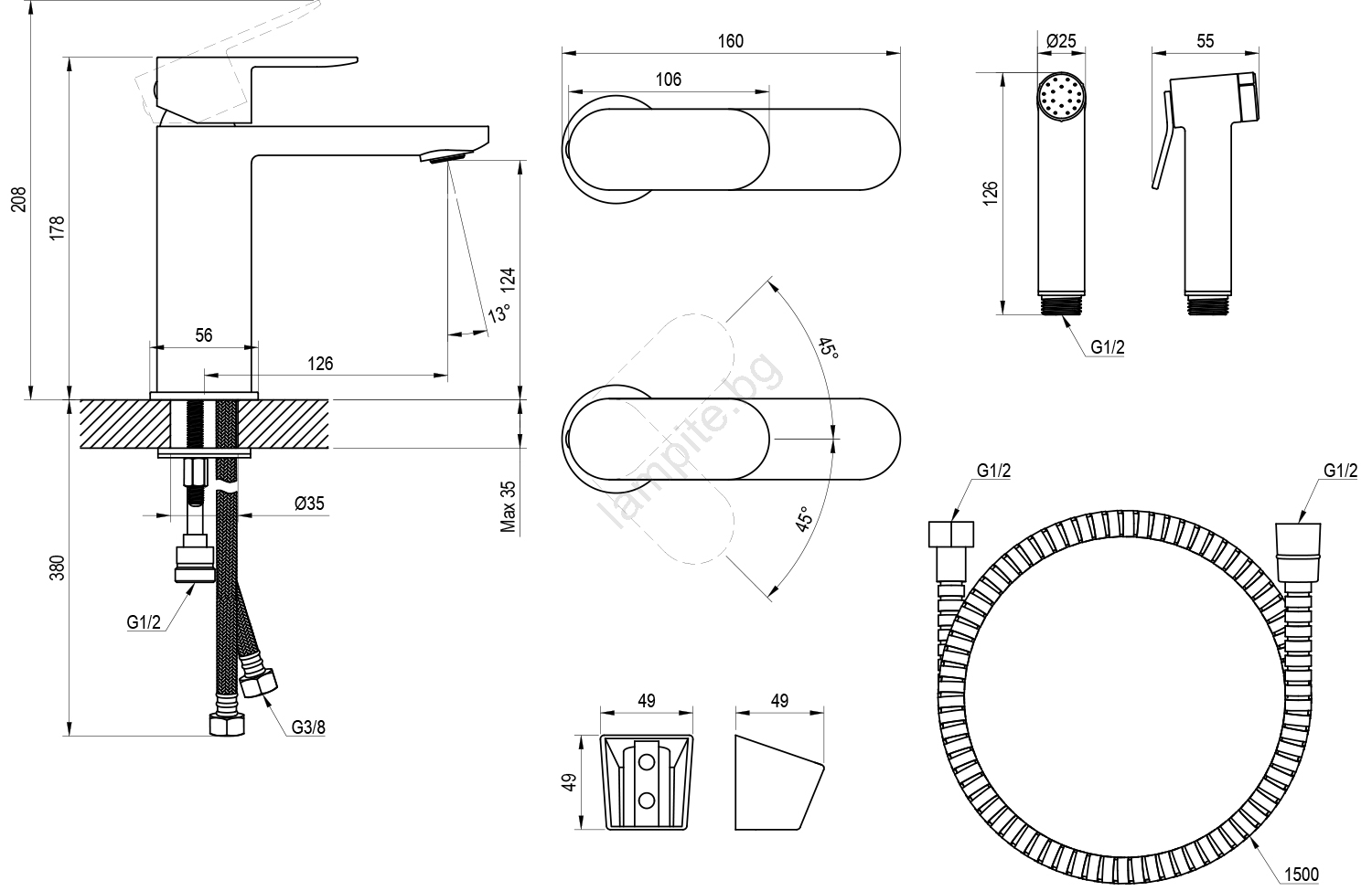 • Комплектът включва ръчен биде душ с обратен клапан, който позволява удобна лична хигиена без необходимост от инсталиране на отделен биде.