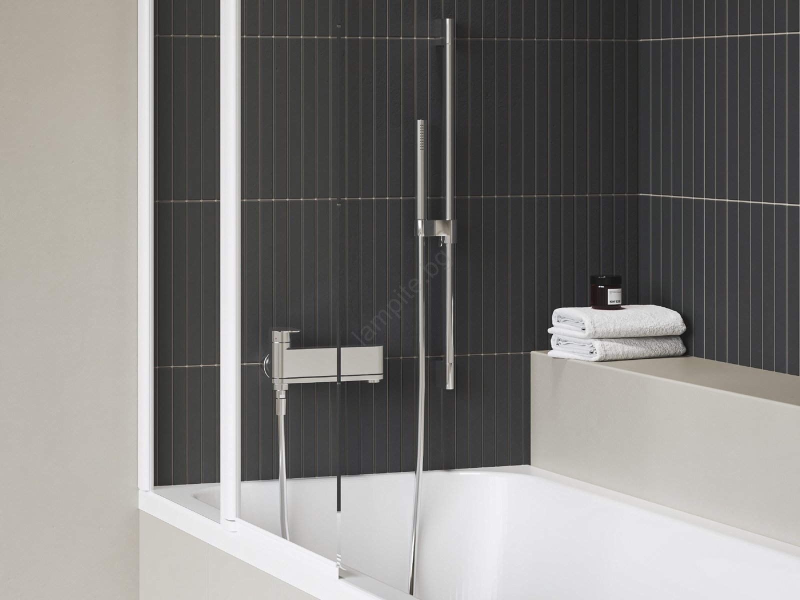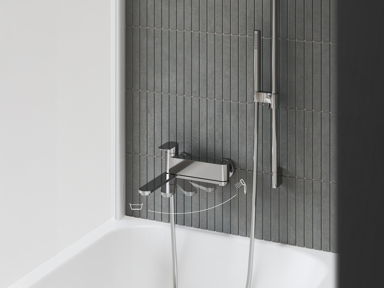 • Уникалният въртящ се лост за превключване съчетава пълненето на ваната и превключването към душ в един елемент.