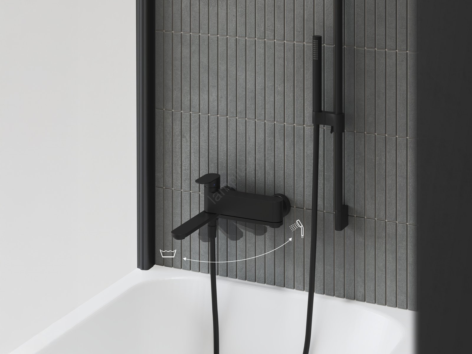 • Уникалното въртящо се превключващо рамо обединява пълненето на ваната и превключването към душ в едно.