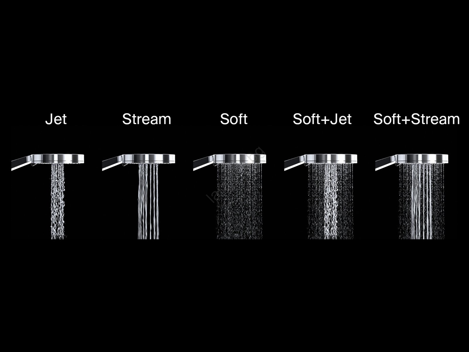 • Ръчният душ предлага пет режима на водна струя – Jet, Stream, Soft, Soft + Jet и Soft + Stream.