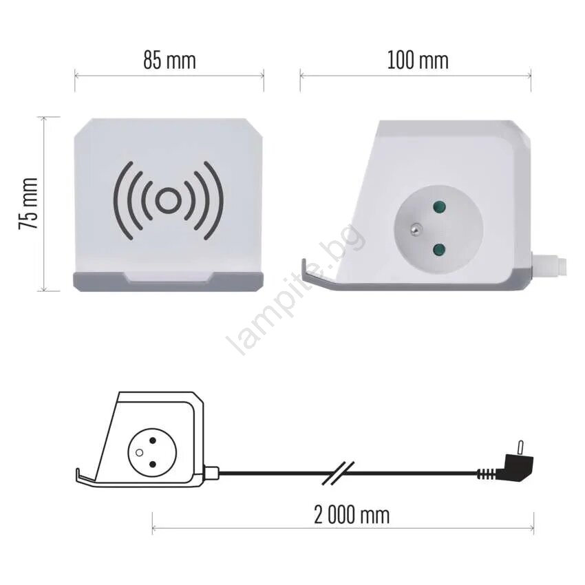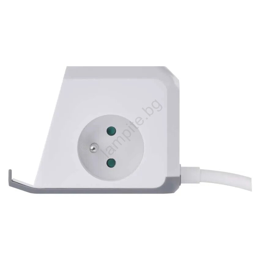 Удължител с безжично зареждане QI 2 гнезда + 2x USB-A + 1x USB-C, 2 м, бял