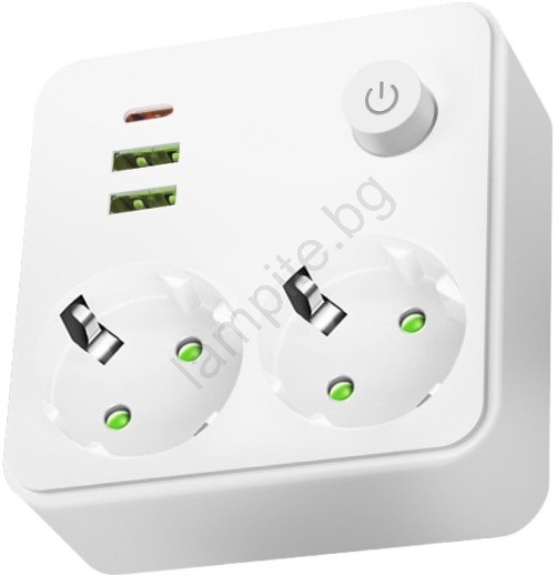 Разклонител с ключ LINEA 2x230V + 3xUSB A/C SCHUKO бял