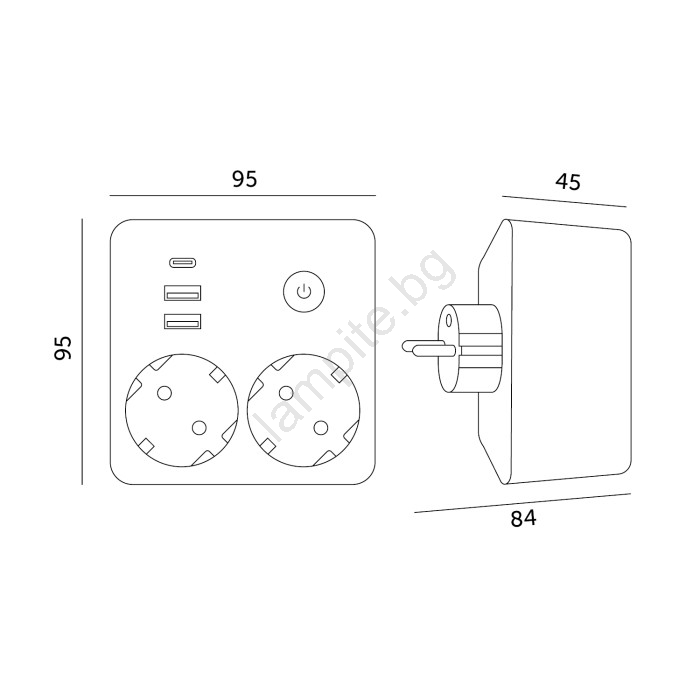 • USB портове: 2x USB-A + 1x USB-C – бързо зареждане на смартфони, таблети и преносими батерии.