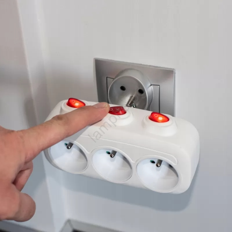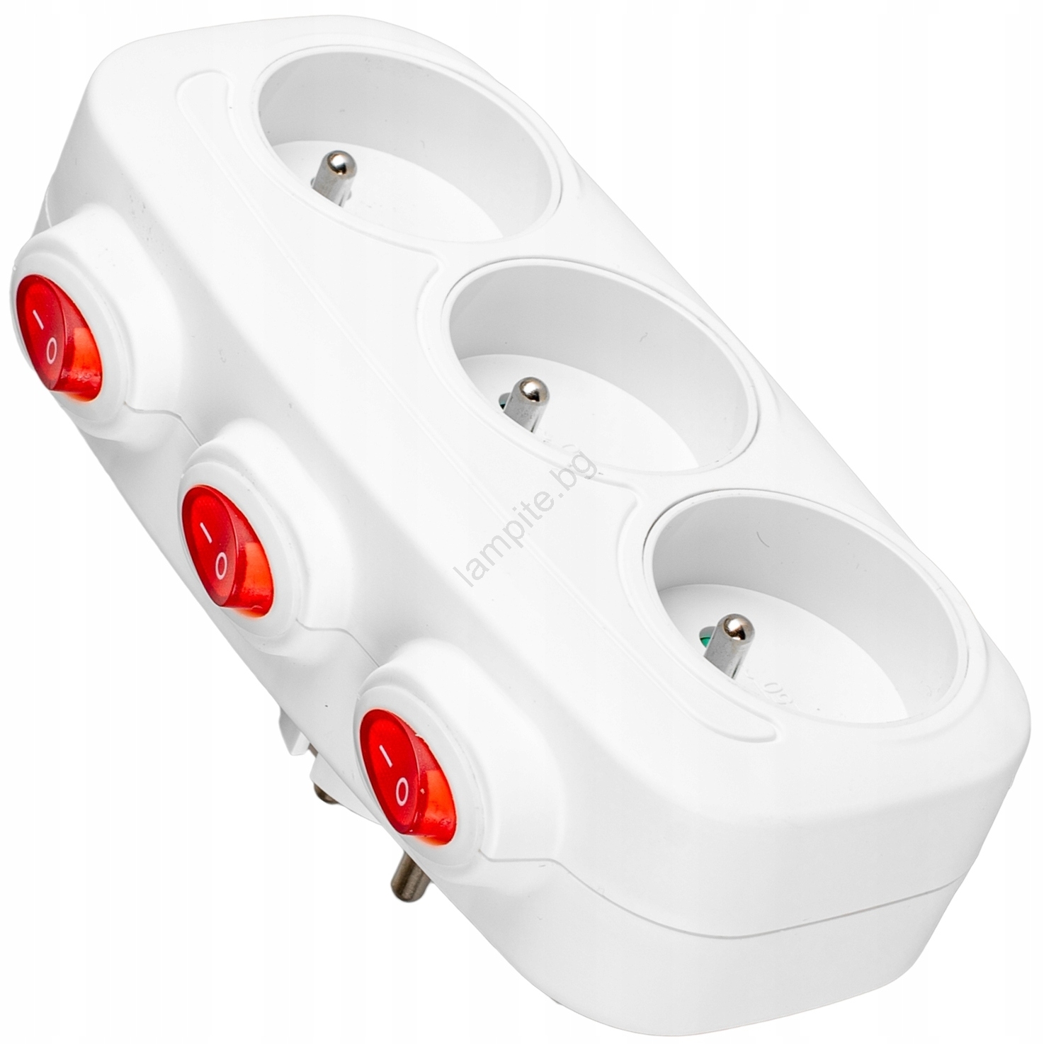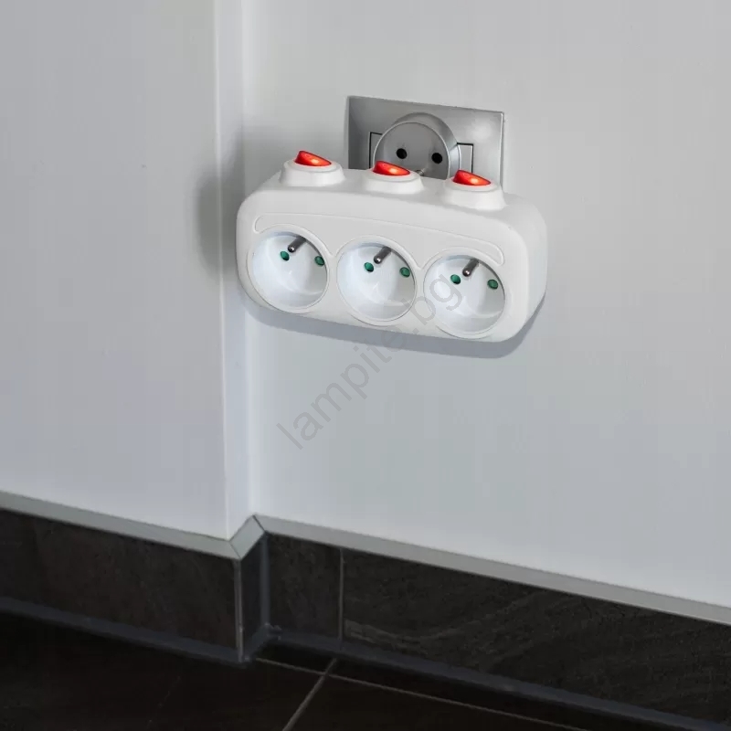 • Мрежов разклонител с 3 заземени гнезда — надеждно решение за дома и офиса.