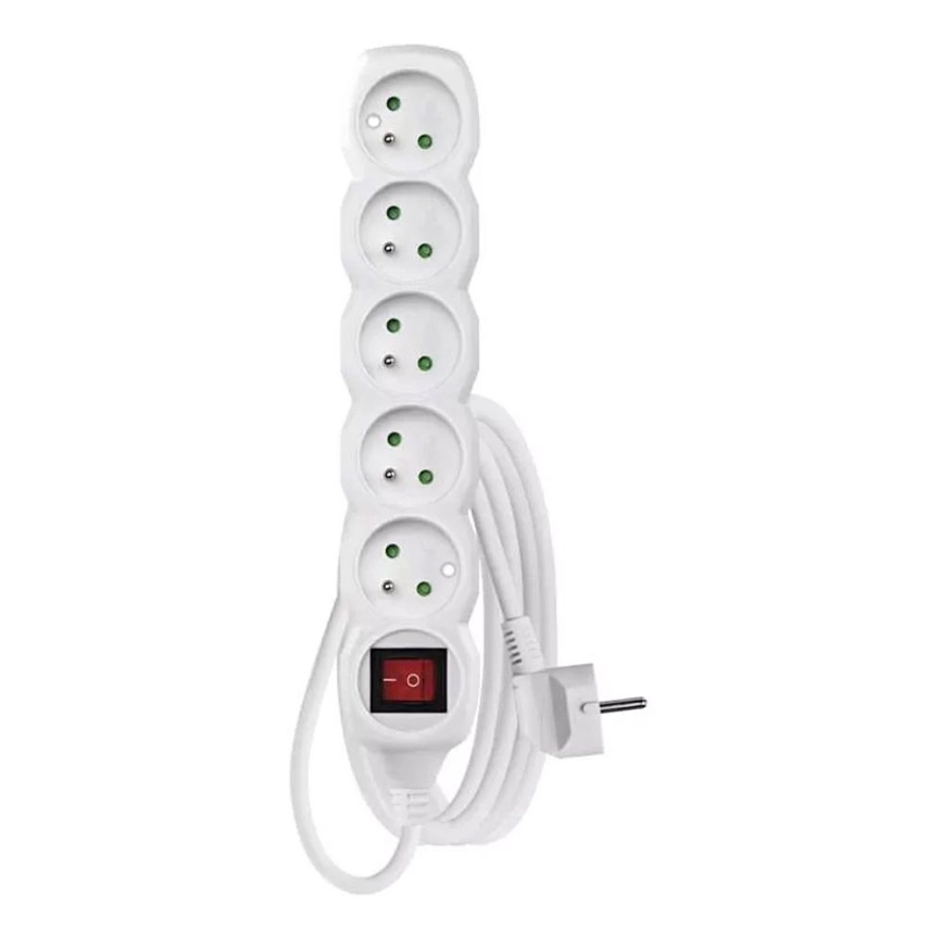 Удължителен кабел с ключ 5 гнезда 3м бял