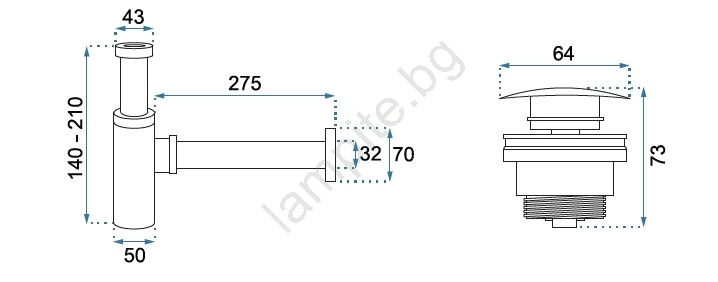 REA-A6952 - Сифон за умивалник с изпускател CLICK-CLACK, диаметър 6,4 см, бял