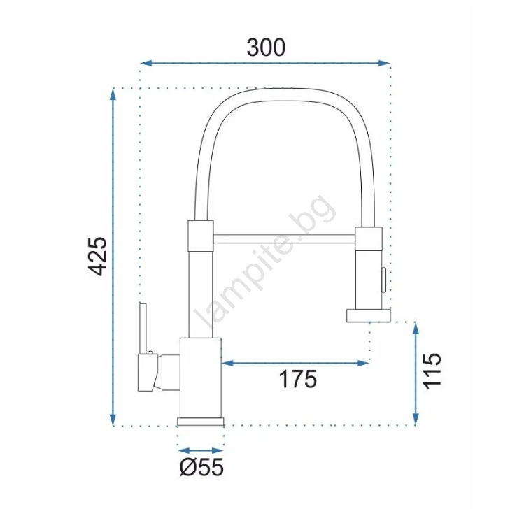 • Практично гъвкаво рамо, завършващо с пръскалка.