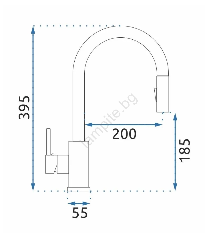 REA-B9147 - Смесител за мивка с изтеглящ се душ FRESH 39,5 см матово черен