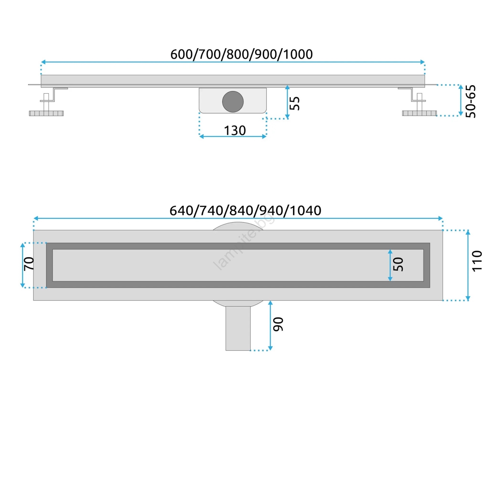• Линеен подов сифон с дължина 100 см и златист финиш.