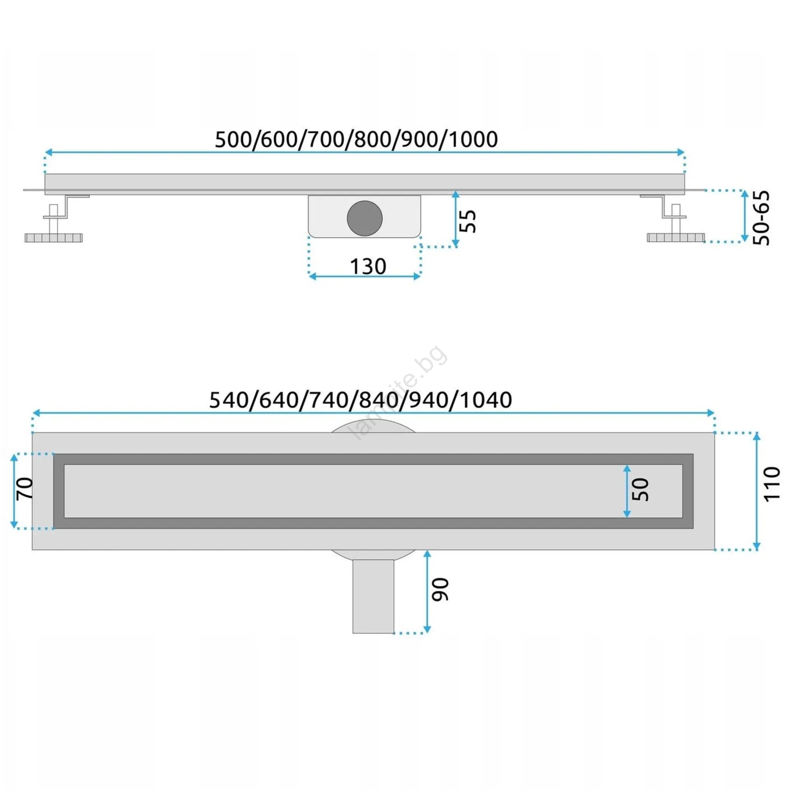 • Линеен сифон с дължина 100 см в декор на четкана стомана.